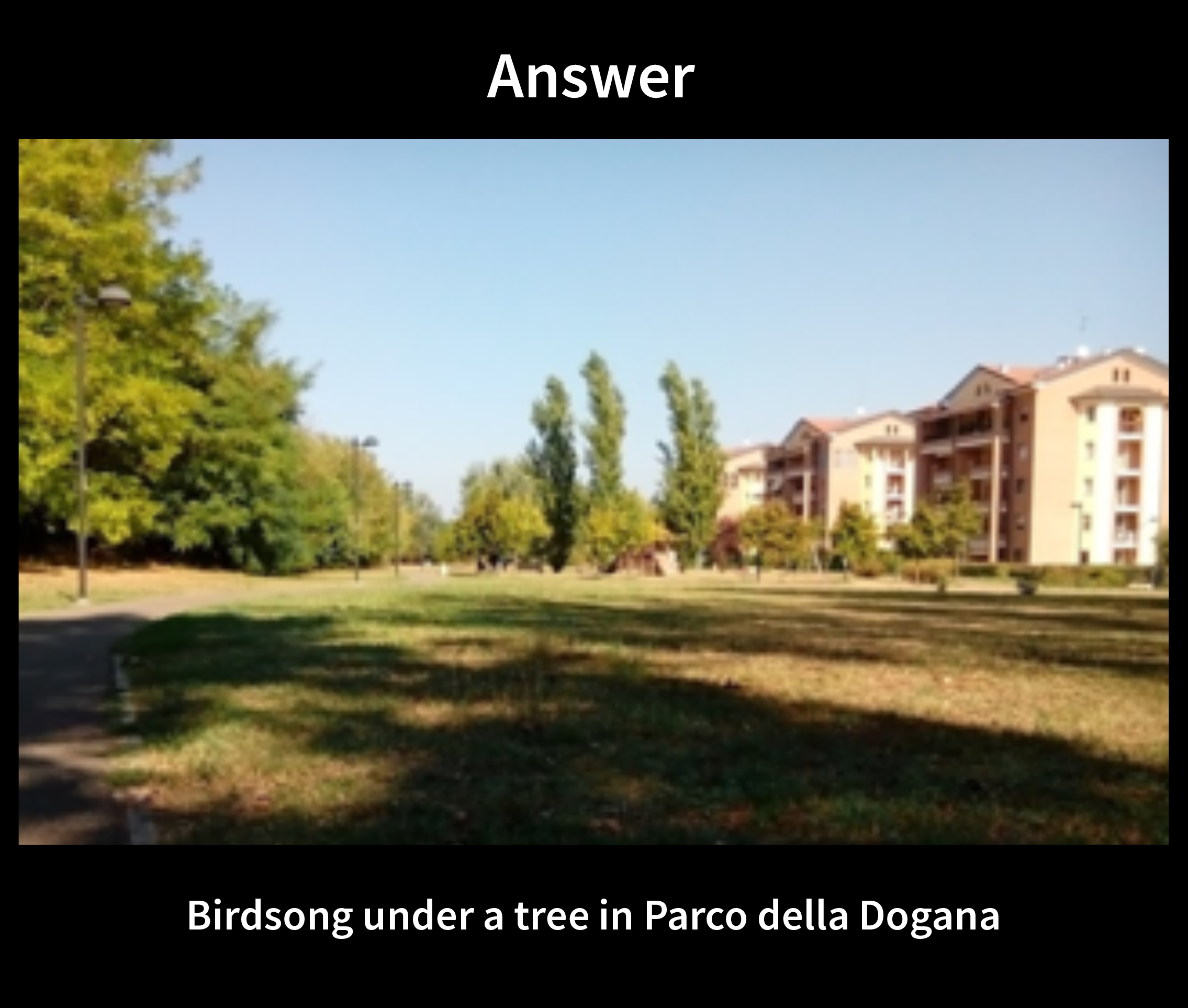 At Parco della Dogana, after the swing, there’s a brick house and, in front, a big tree. This place is very good for this listening.